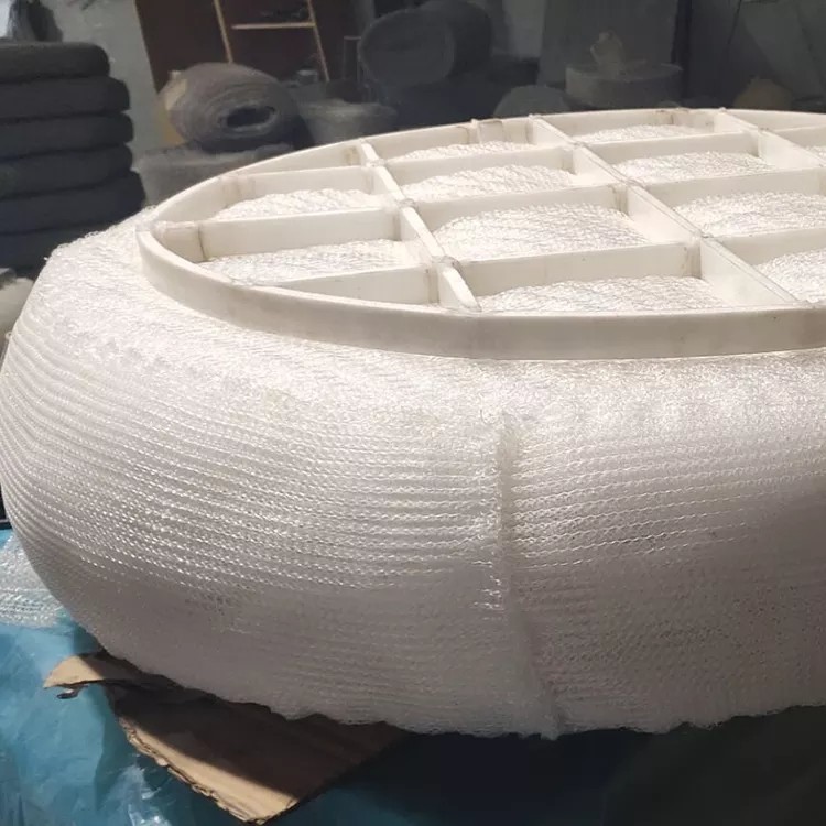 ワイヤーメッシュデミスター (または霧除去機) は,主に直径3μmから5μmのドロップを分離するために使用され,動作原理は右側の図に示されています.液体ドロップとガスが一定の速度で上昇すると垂直線で線網を通過し,上昇する滴の慣性により,線に衝突し,その後線表面に粘着します.線上の滴は散らばって消える線を湿らせてしまうので 線が湿った状態になるので液体の表面張力とワイヤの毛細性効果のため液体の表面張力が上昇する気体の浮気力を上回るときに分離して落ちます.彼らは後ろ向きの位置でコンテナのデバイスに流れるガス速度が適切に制御され,他の適切な条件がある限り,ガスがワイヤ・メッシュ・デミスターを通過した後,泡除去の効率は97%にも達します.泡を取り除く目的は完全に達成されます.